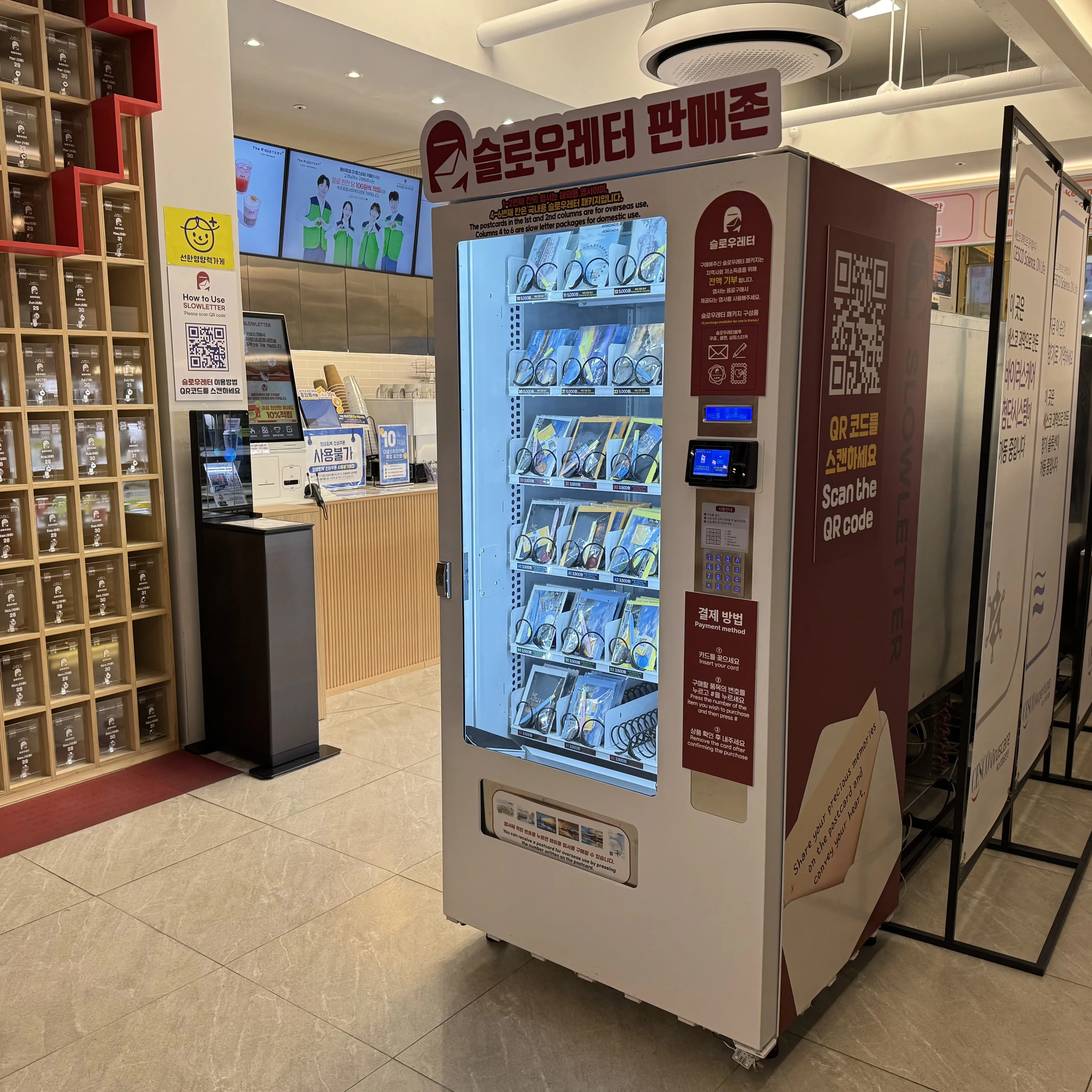 슬로우레터 패키지에는 엽서봉투, 왁스실링, 펜, 우표, 이용안내서이 들어 있습니다.