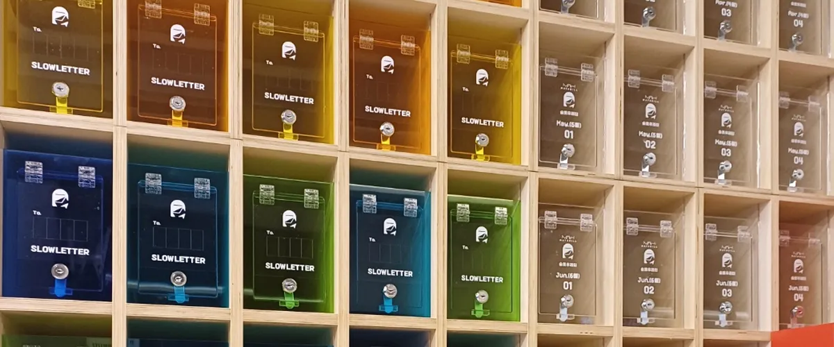 자작나무로 만들어진, 총 432칸의 우편함으로 이루어진 슬로우레터